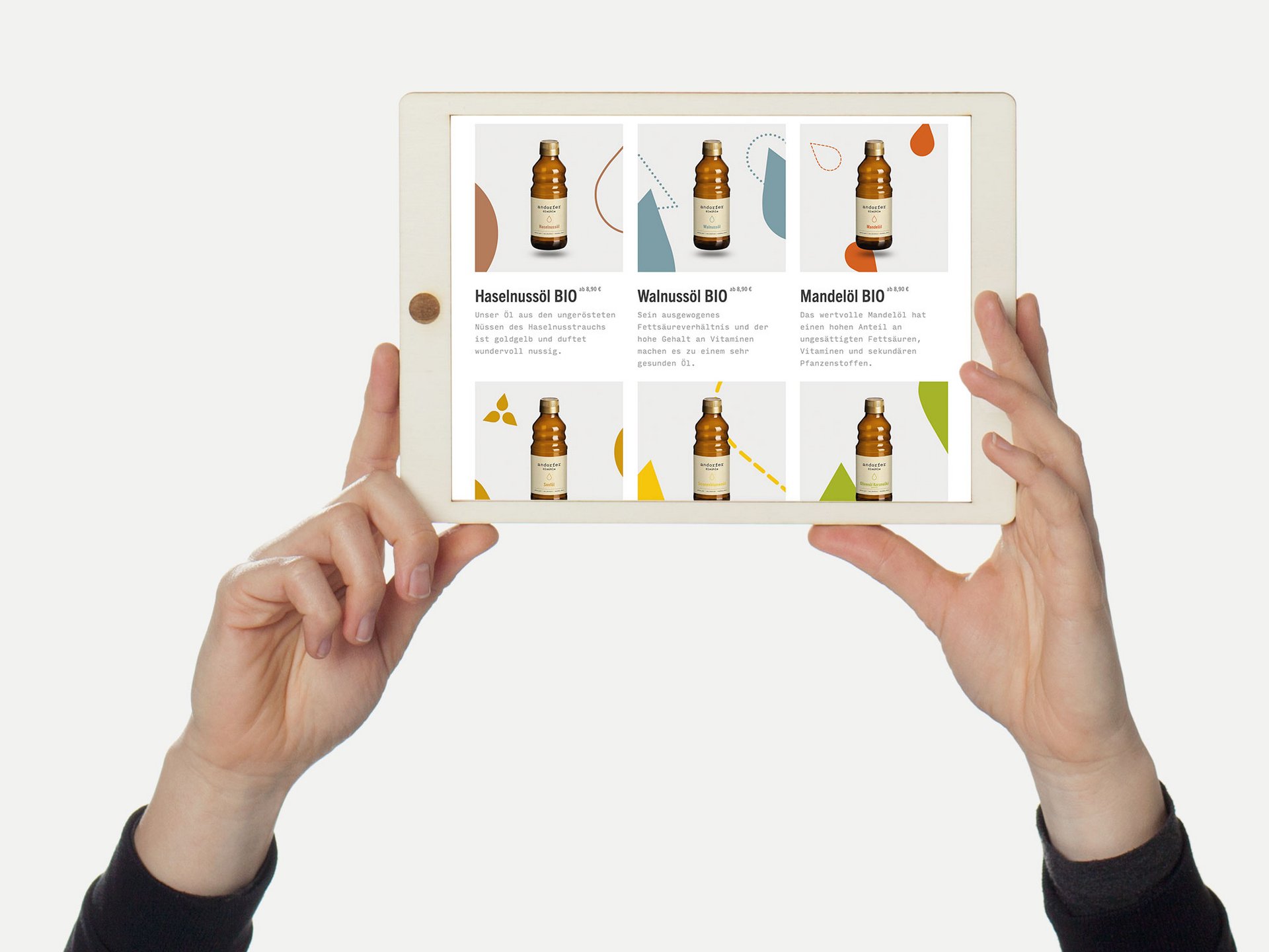 Die andorfer ölmühle ist die wohl phänomenalste Bio-zertifizierte Ölmühle Frankens. Neben dem Onlineshop werden die mit viel Liebe zum Detail hergestellten Öle, Muse und sonstigen Naschereien im Ladengeschäft der gläsernen Manufaktur feilgeboten. Damit dem fränkischen Publikum und allen digitalen Besucher*innen das Wasser im Mund zusammenläuft, wurde ein wertiger Außenauftritt gestaltet, der in Erinnerung bleibt.